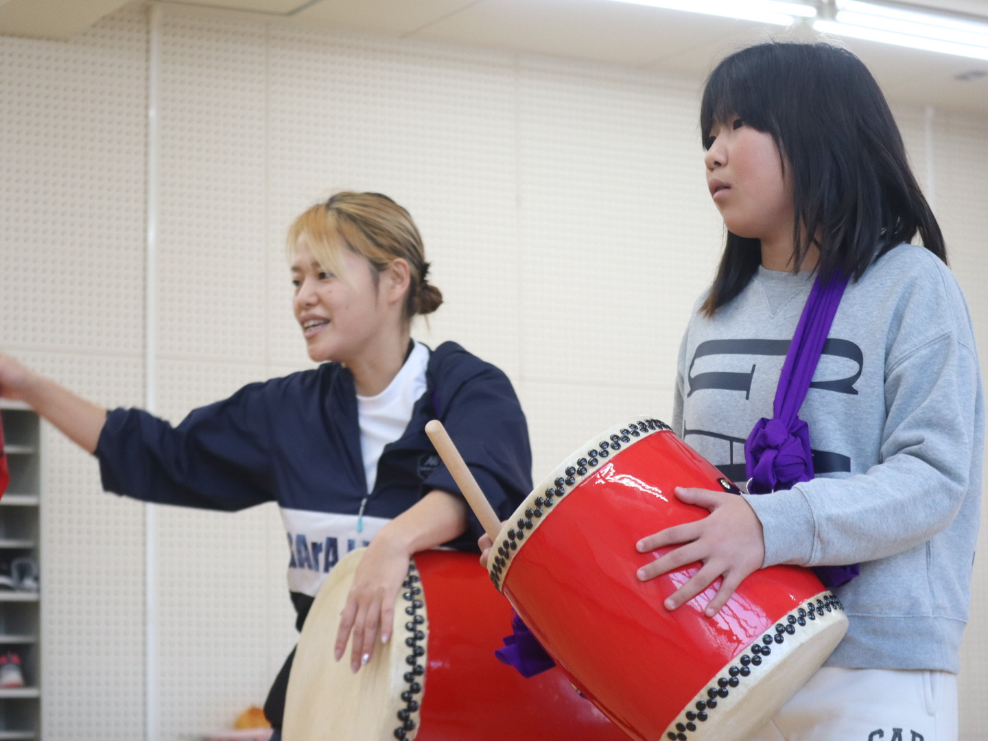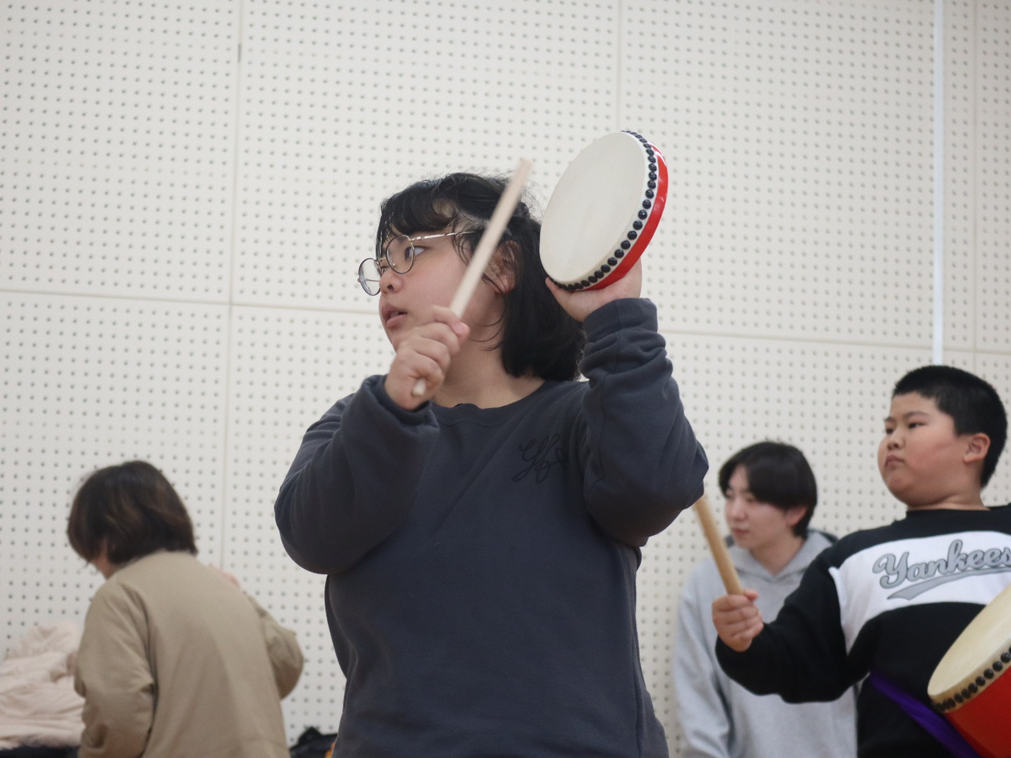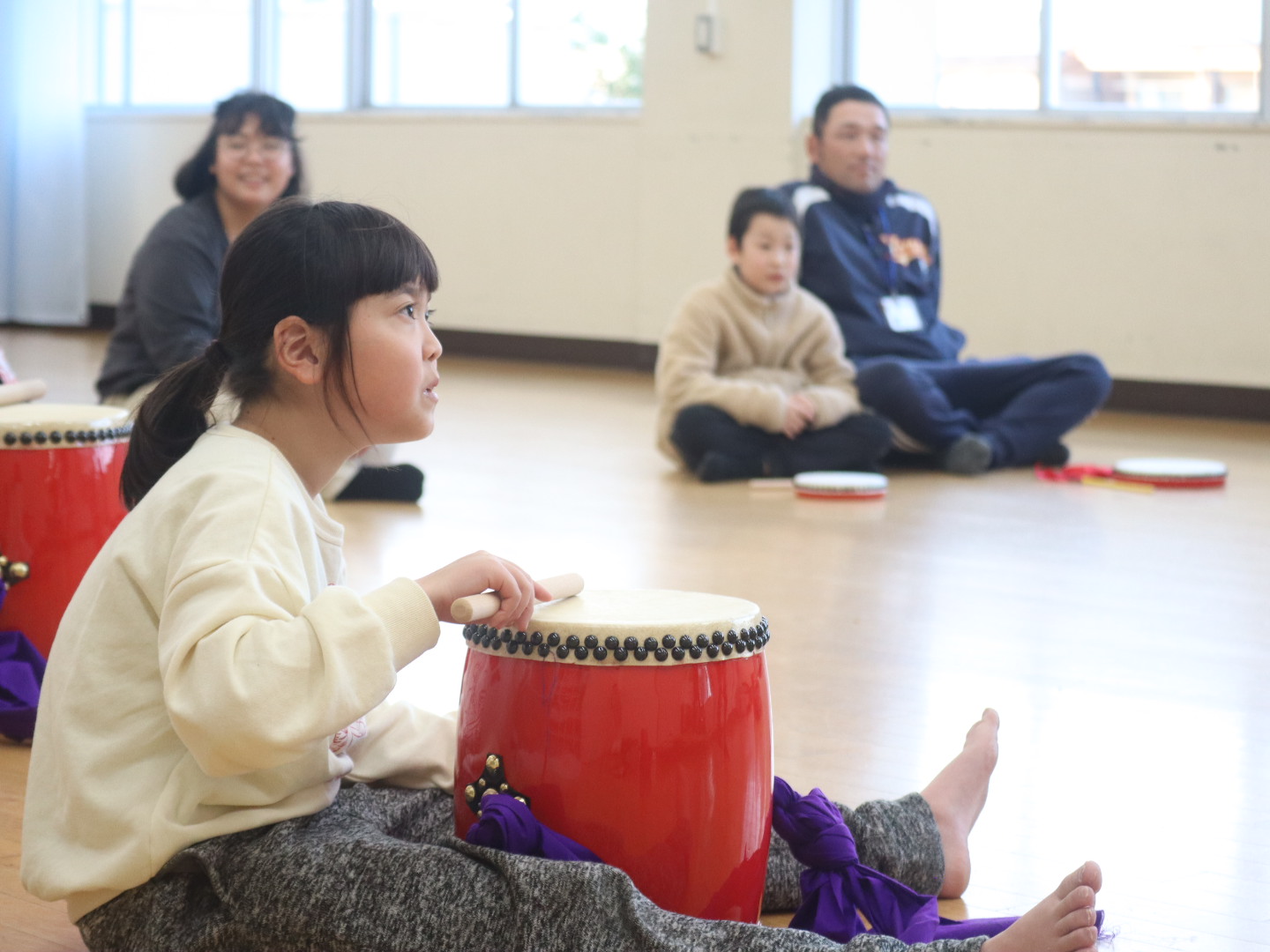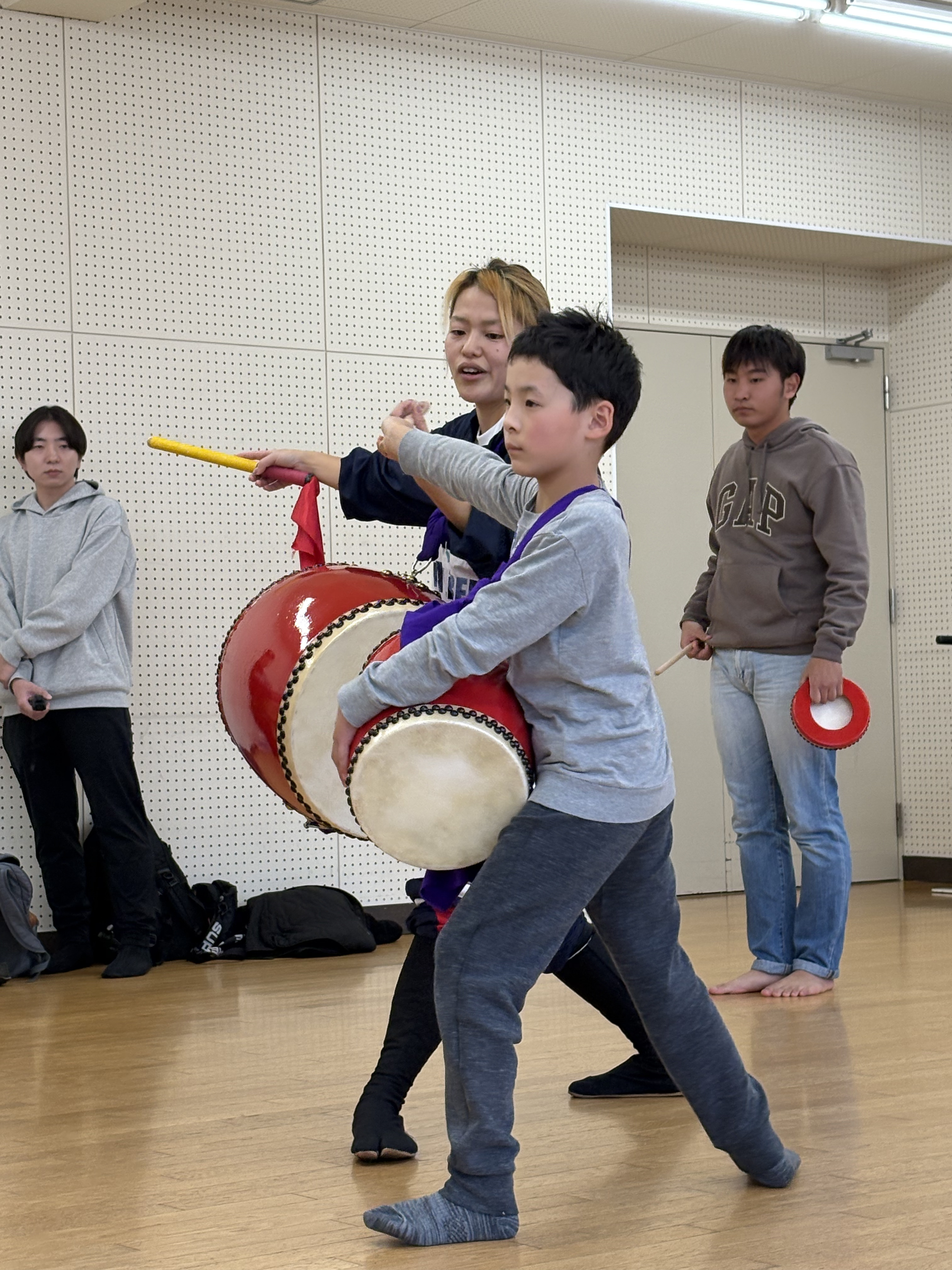 小さな太鼓の”パーランクー”と、大太鼓に分かれ、音楽に合わせて太鼓を叩きながら踊ります。地域のイベントで発表する予定も♪日頃見られないかっこいい姿や真剣な表情に、見ている側も引き込まれます!